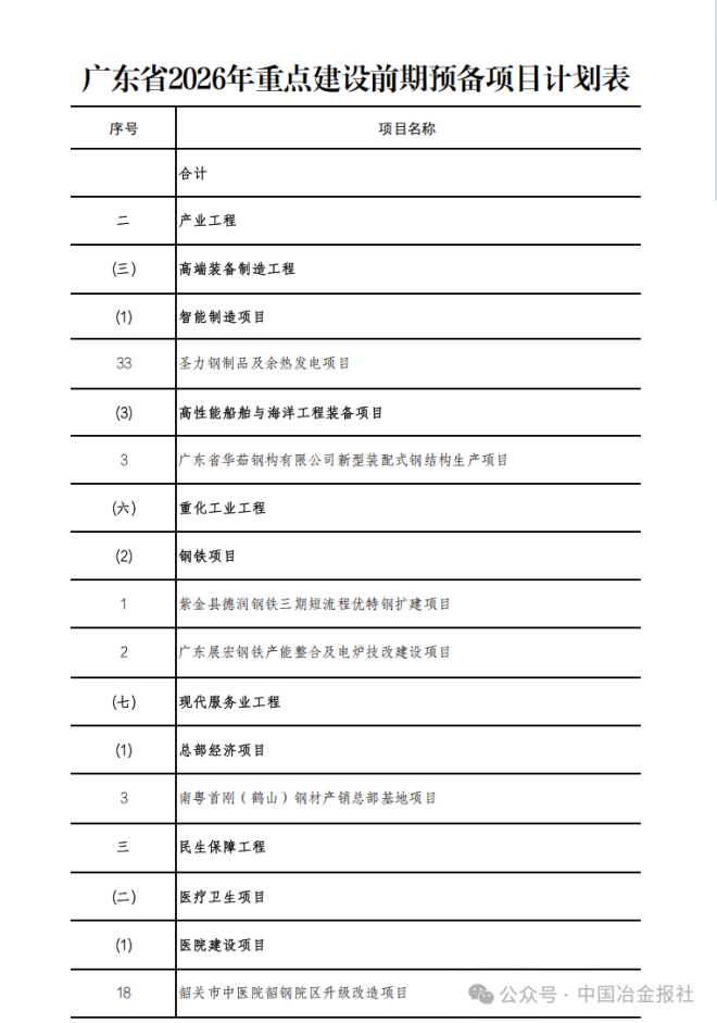 多项涉及钢铁!广东省2026年重点建设项目发布