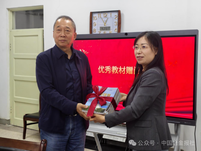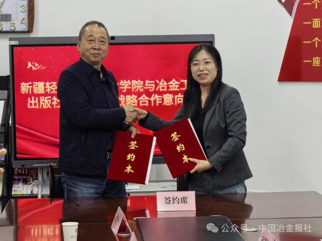 在全场见证下,双方举行优秀教材赠阅仪式,冶金工业出版社向新疆轻工职业技术学院捐赠冶金、材料、机电等领域优质教材与专业图书。