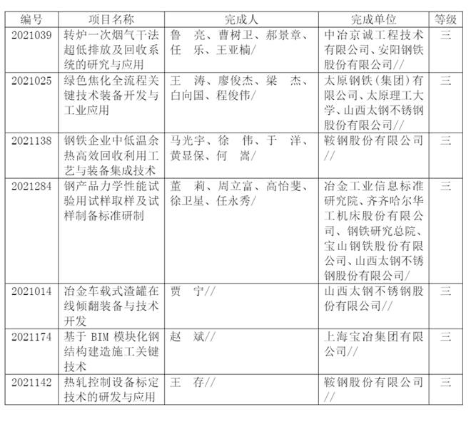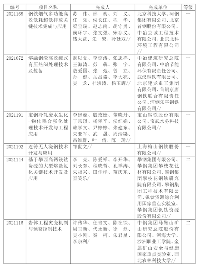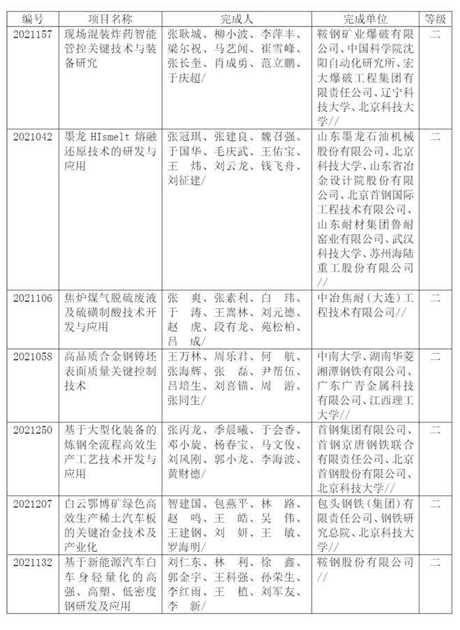 2021年冶金科学技术奖专业评审推荐获奖项目发布!