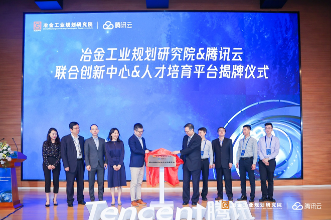 会上,冶金工业规划研究院党委书记、总工程师、俄罗斯自然科学院外籍院士李新创和腾讯公司副总裁、腾讯智慧工业和服务业总裁李强分别代表双方就成立联合创新中心和人才培育平台进行了签约,二人共同为其揭牌。