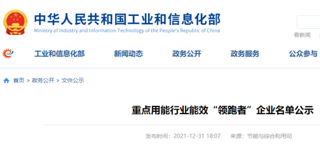 2021年12月31日,工业和信息化部网站对2021年度重点用能行业能效“领跑者”企业名单进行公示。其中,湛江钢铁、沙钢、南京钢铁、唐山东海钢铁、中信泰富特钢旗下铜陵泰富特种材料榜上有名,成为各单项的优胜者!