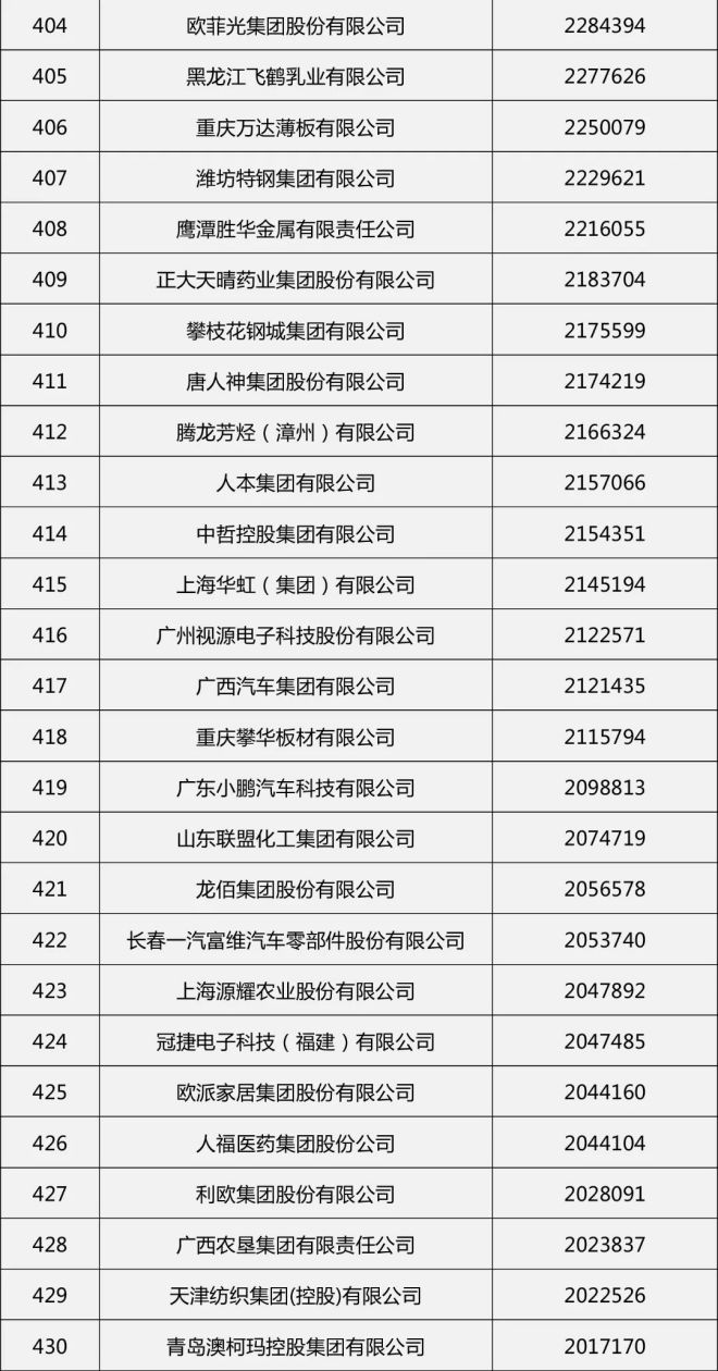 据中国企联常务副会长朱宏任介绍,“2022中国制造业企业500强”的入围门槛为147.78亿元,较上年提高36.88亿元;实现营业收入47.11万亿元,较上年增长17.09%;实现净利润1.47万亿元,较上年增长24.47%。这3项指标均创下历史新高。位居前三位的企业是:中国石化、中国宝武、中国五矿。