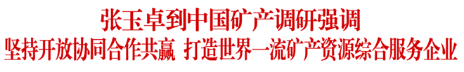 9月9日,国务院国资委党委书记、主任张玉卓到中国矿产资源集团有限公司调研企业改革发展、数智化转型、党的建设等工作,强调要深入学习贯彻习近平总书记关于保障国家能源资源安全的重要论述,坚持开放协同、合作共赢,持续深化与国内外上下游企业的密切合作,共同构建安全、高效、共赢、可持续的矿产资源产业链供应链,高质量打造公司治理体系,不断增强核心功能、提升核心竞争力,加快打造具有全球竞争力和影响力的世界一流矿产资源综合服务企业,有力服务行业高质量发展,为增强我国重要矿产资源供应保障能力贡献更大力量。