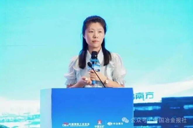 图为中冶南方(武汉)热工有限公司王婷作题为《硅钢热处理炉极致能效技术研发与应用》报告