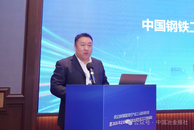 赵金奎在讲话中表示,他受中国钢铁工业协会党委副书记姜维同志的委托,代表中国钢铁工业协会对本次研讨会的顺利召开表示热烈祝贺。赵金奎表示,当前钢铁行业正经历一场由规模扩张向质量效益转变的深度变革,我们面临的不仅是市场的周期性波动,更是结构性的调整与重塑。这对现代产业工人队伍建设提出了前所未有的新要求:一是从“规模红利”转向“技能红利”,产业工人需要掌握操作智能化设备、执行绿色工艺的能力。二是从“单一技能”转向“复合能力”,产业工人需适应小批量、多品种的高端产品生产模式。三是从“传统工匠”转向“数字工匠”,产业工人需具备与工业互联网、大数据等新技术共融的素养。赵金奎认为,未来,科技领军人才将成为行业核心竞争力提升、破解关键性技术难题的“破局关键”,绿色低碳专业人才将成为支撑行业绿色、低碳发展的“转型之基”,数字冶金人才将赋能行业智能升级,国际化复合型人才将为企业打开全球视野,成为参与全球竞争的重要支撑。