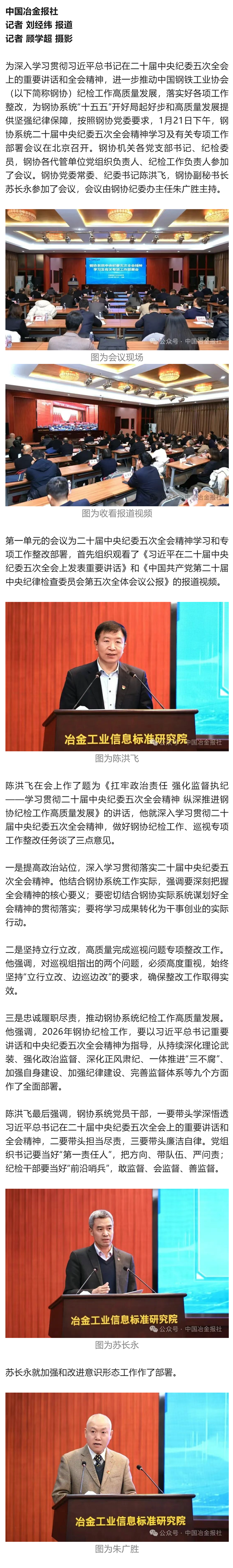 以五次全会精神为指导 推动钢协纪检工作高质量发展 钢协系统二十届中央纪委五次全会精神学习及有关专项工作部署会议在京召开