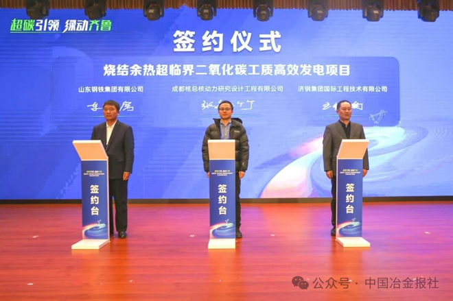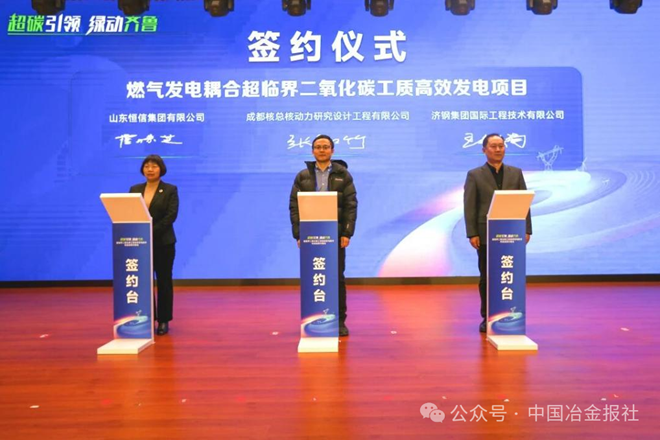 会上举行了签约仪式,成都核总核动力研究设计工程有限公司、济钢集团国际工程技术有限公司与山东钢铁集团有限公司就“烧结余热超临界二氧化碳发电项目”,成都核总核动力研究设计工程有限公司、济钢集团国际工程技术有限公司与山东恒信集团就“燃气发电耦合超临界二氧化碳发电项目”签署合作意向协议。