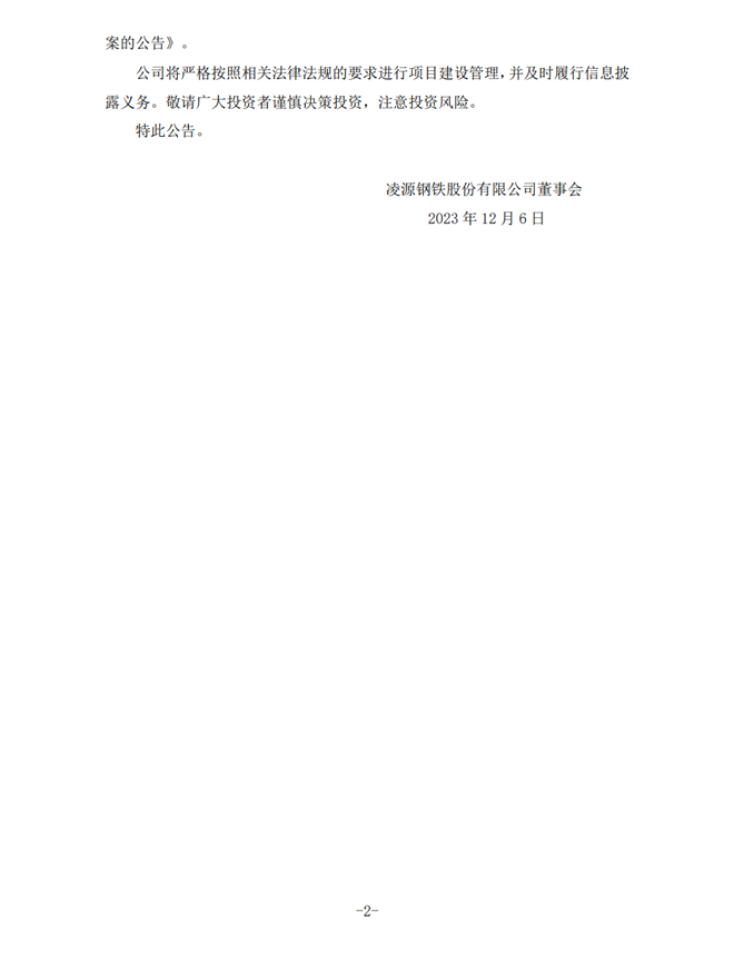 凌钢股份:凌源钢铁股份有限公司关于1#—4#高炉装备升级建设项目进展的公告