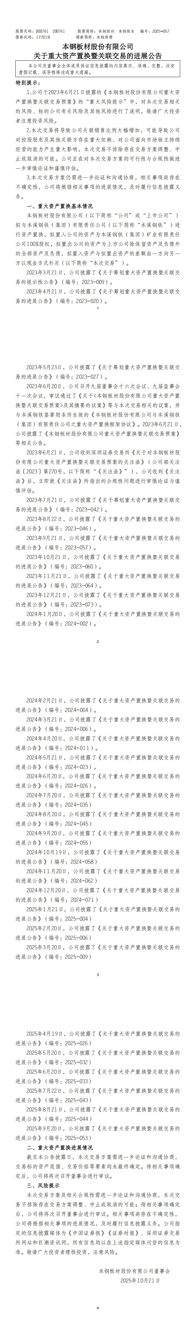 本钢板材:本钢板材股份有限公司关于重大资产置换暨关联交易的进展公告