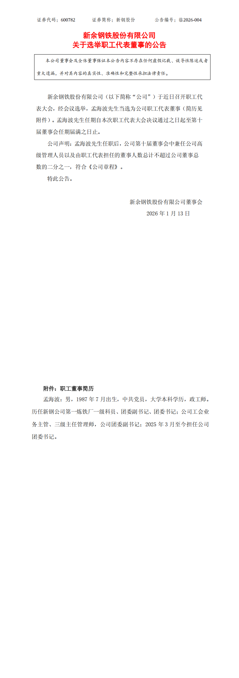新钢股份:新钢股份关于选举职工代表董事的公告