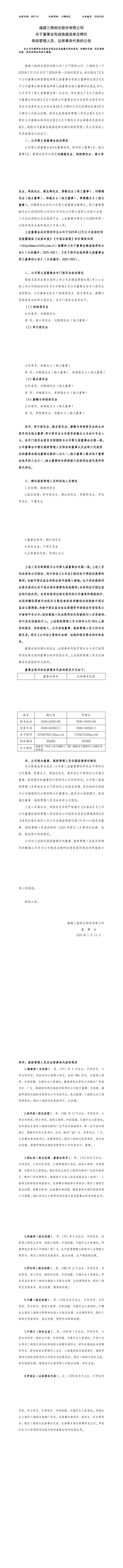 三钢闽光:关于董事会完成换届选举及聘任高级管理人员、证券事务代表的公告