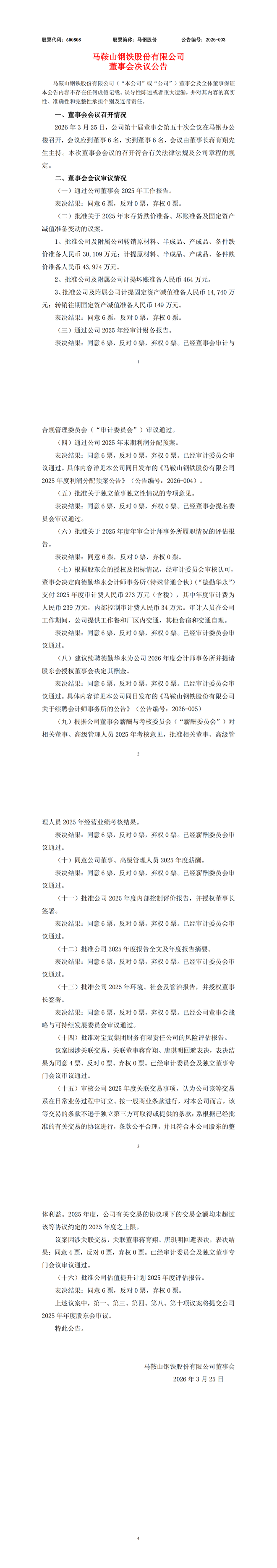 马钢股份:马鞍山钢铁股份有限公司董事会决议公告