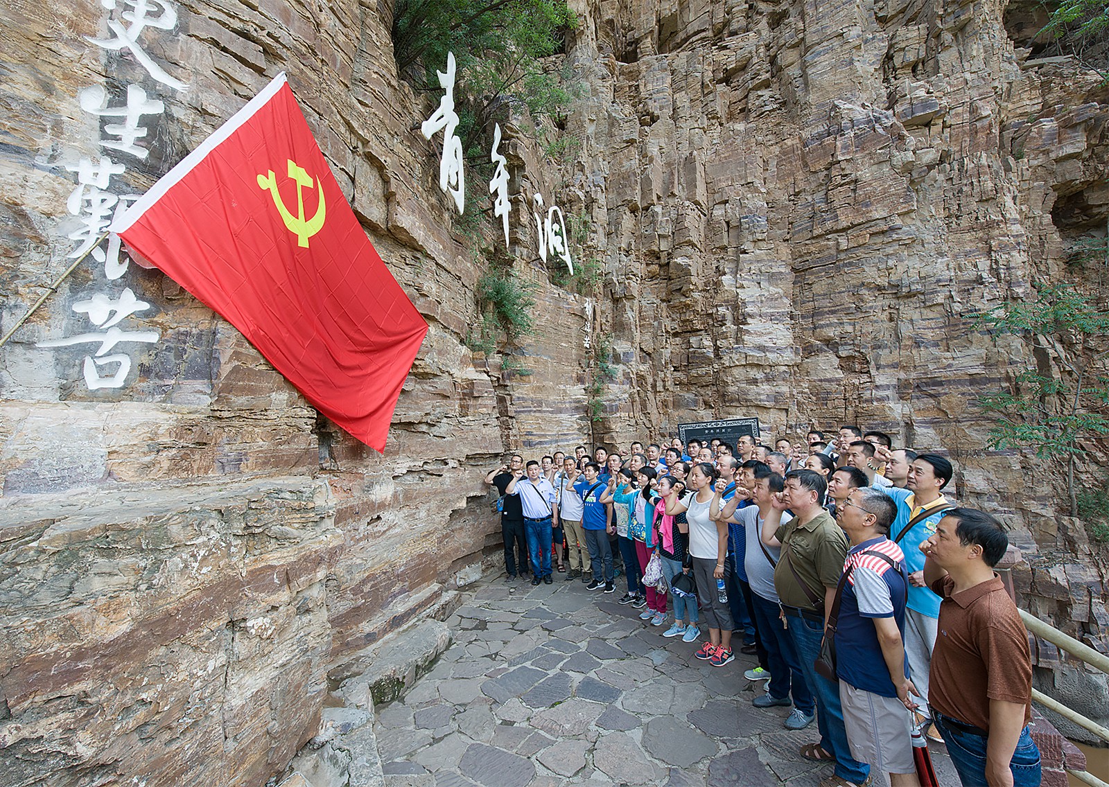 连日来,安钢集团公司党委组织开展了讲好“两学一做”学习教育专题党课、“党员主题活动日”等丰富多彩的活动。图为安钢基层党支部书记到林州红旗渠重走修渠路、重温入党誓词主题日教育活动现场。(特约通讯员 殷海民 摄)