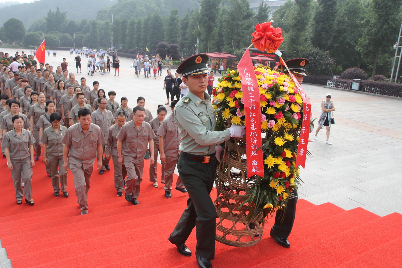 七一前夕,柳钢在湖南韶山举办了以“提高党性修养、落实从严治党”为主题的组工干部红色基地培训班。图为参加培训的柳钢组工干部向毛主席铜像敬献花篮。(记者 覃守超 通讯员 覃智 摄)