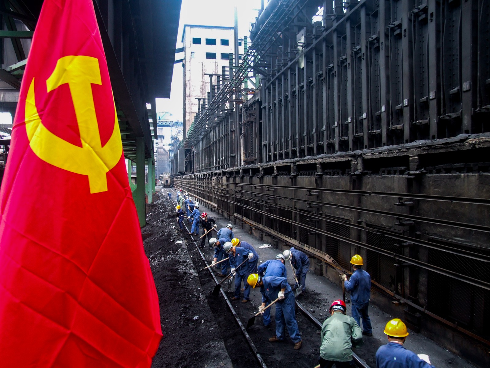 七一前夕,江西新钢各级党组织结合创建清洁环保花园式工厂建设要求,组织3500名党员利用业余时间开展以厂区卫生整治为主要内容的义务奉献劳动。图为党员正在清理出焦轨道时的情景。(特约通讯员 蓝义高 摄)