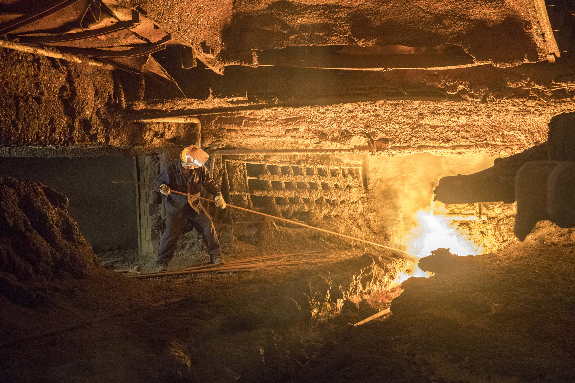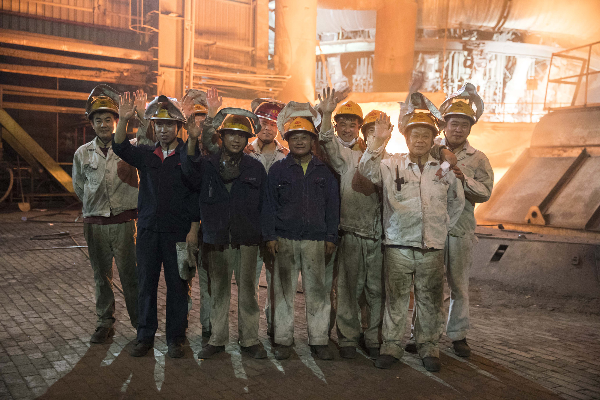 济钢3号1750立方米高炉即将流完最后一炉铁,炉前工看到记者离去挥手告别。