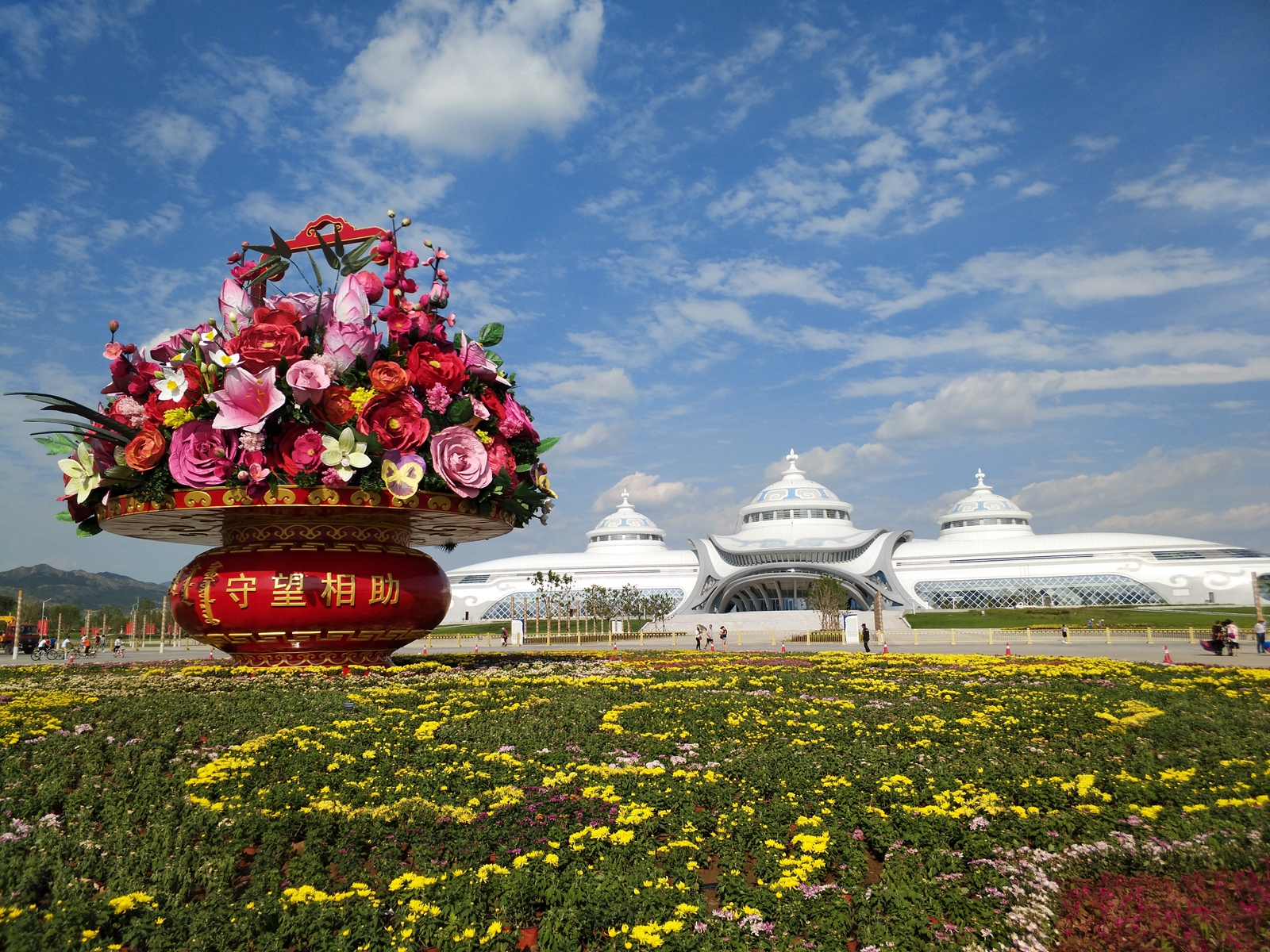 2017年8月8日,庆祝内蒙古自治区成立70周年庆典大会在呼和浩特市少数民族群众文化体育运动中心隆重举行。在主会场外的文化广场上,一座巨型景观花篮在蓝天白云的映衬下显得格外鲜艳夺目(如图)。该景观花坛工程由首钢建设集团钢结构分公司承建,花坛由一个直径4.6米、板厚36毫米的底盘,一个直径4.2米、高4.8米的篮肚、一个直径11.5米的篮盘和一个高10.7米的篮芯组成,总重98吨。(特约通讯员 郑志宏 赵泽民 摄影报道)