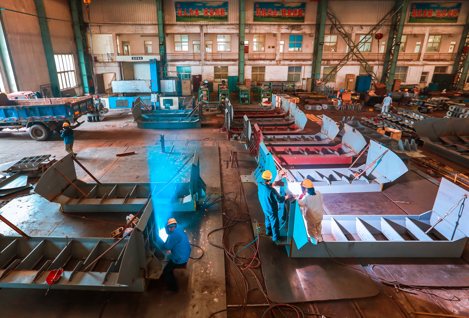 今年4月份,马钢表面技术公司拿下出口俄罗斯400件台车、800个链节的制作任务,这是该公司今年接到的最大的一笔机械制造类出口订单。目前,项目已进入后期收尾阶段,预计全部台车设备将于8月下旬完成制作发往俄罗斯。图为该公司机械设备制造厂台车制作组装现场。(特约通讯员 张明伟 通讯员 胡富 摄)