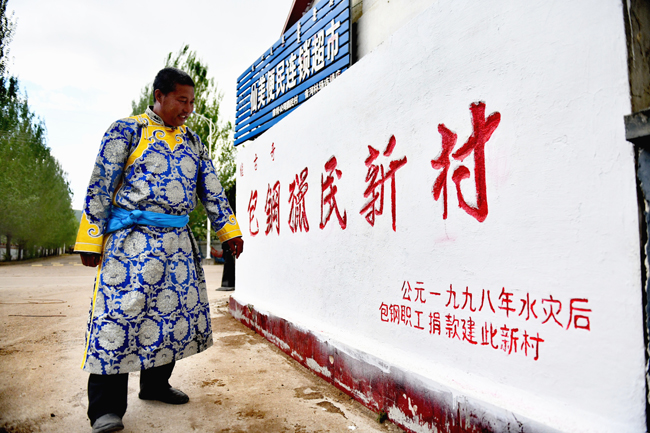 5月29日,内蒙古呼伦贝尔市阿荣旗音河乡维古奇村,鄂温克族村委委员安维军正在讲述包钢支援新村建设的难忘历史(如图)。1998年,内蒙古呼伦贝尔市阿荣旗音河乡维古奇村遭遇百年罕见大洪灾,全村80%的住户房屋漏雨、墙体破损面临倒塌,就在猎民居无定所、愁眉不展的时候,包钢集团主动伸出援手,捐款30万元,建设房屋27栋,解决了104户猎民燃眉之急。为表达对包钢的感恩之情,村民们将自己的村庄更名为“包钢猎民新村”,书写下民族团结、守望相助的生动佳话。(记者 白立新/文 通讯员 赵伟佳 /摄)