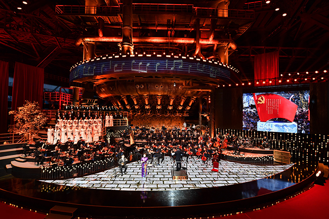 6月25日,“山河永定,古都新韵”,2023西山永定河文化节在首钢园开幕。西山永定河文化节是北京市推进西山永定河文化带建设的标志性活动。2021年和2022年,西山永定河文化节开幕式已连续两次在首钢园成功举办,以三高炉为载体,通过大型交响音诗画的节目形态,以高品质的艺术水准在文艺界和传媒界获得一致好评,使西山永定河成为新时代文艺品牌。图为演出现场。(特约通讯员 王京广 摄)