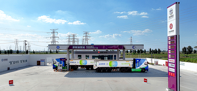 11月14日,荣程集团氢能重卡正在荣程集团油氢站加氢(如图)。近年来,荣程新能集团致力于打造氢能产业解决方案的集成商,初步形成了氢能重卡运营、加氢站建设、绿氢制储加用闭环链。截至2024年10月31日,荣程新能投运加氢站超10座,氢能运行数据实现了双过百、双过千、双过万、双过千万(双过百即累计投运氢燃料电池汽车650辆,制取绿氢350吨;双过千即累计加氢2160吨,氢能运输线路超1800公里;双过万即减排二氧化碳18392吨,荣程智运平台货运车辆超24万辆;双过千万即运输货物1950万吨,行驶里 程2081万公里),成为国内拥有在市政道路实际开展氢能重卡运输业务车辆 最多的实体企业。(刘迎昕摄)