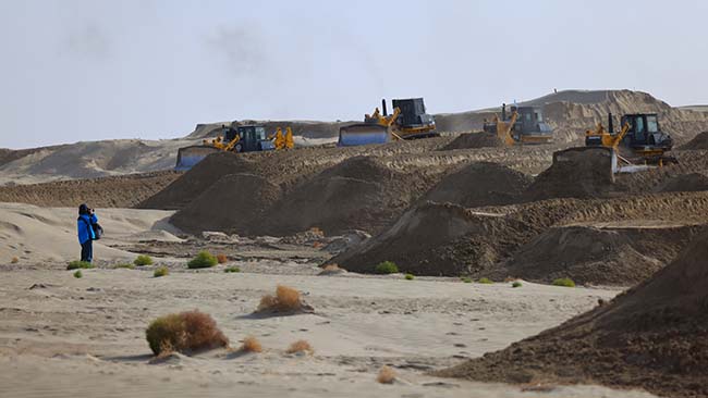 10月24日,第一师阿拉尔市塔里木河干流生态综合治理项目施工现场。