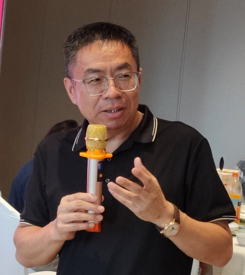 图为河南威猛振动设备股份有限公司总经理、中国重型机械工业协会振动机械分会理事长王思民在会上与代表们交谈。(夏杰生 摄)
