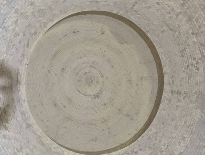 图为鞍钢集团朝阳钢铁厂2580立方米高炉内燃式热风炉炉壳利旧顶燃式改造砌筑悬链线拱顶时过程