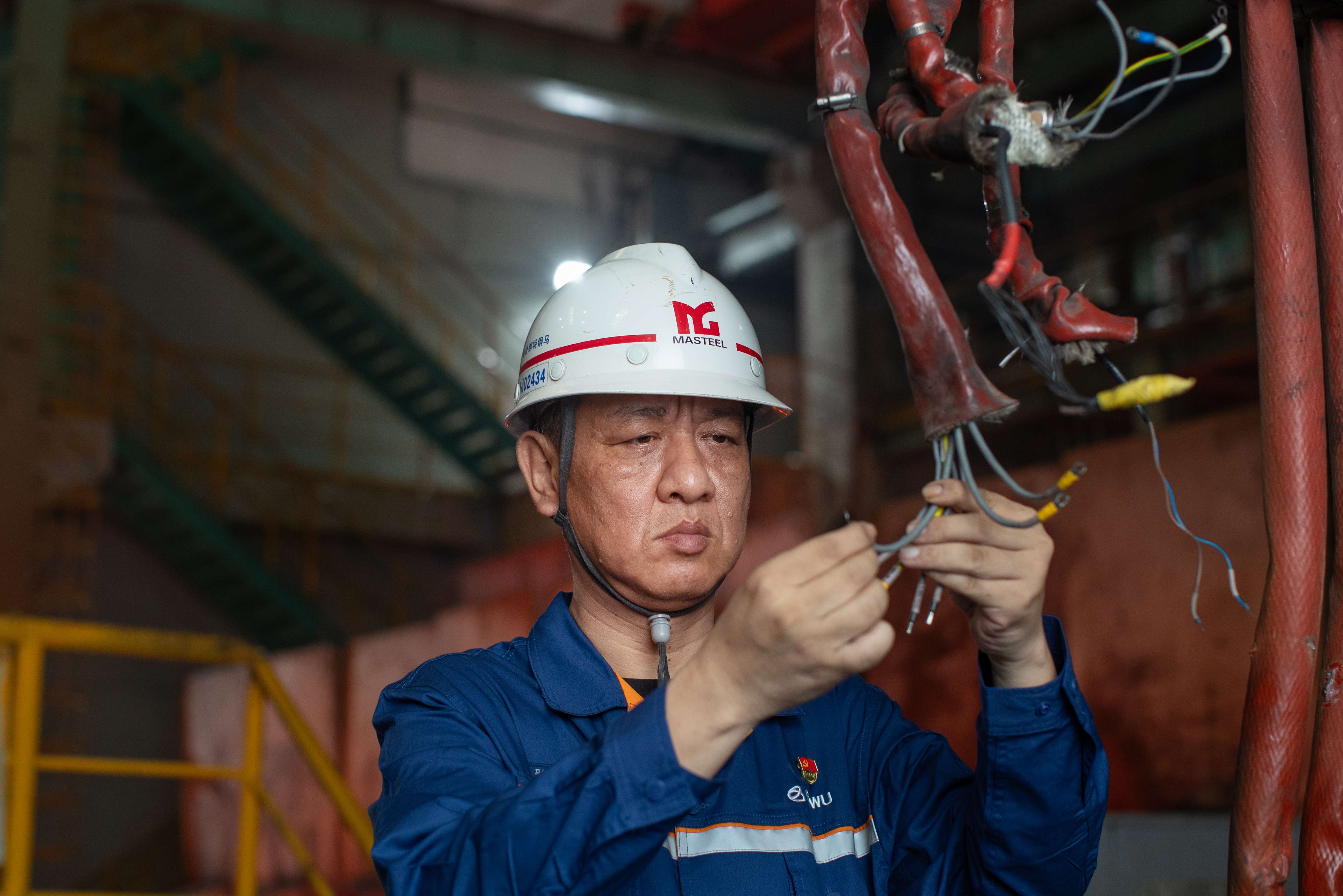 在中国宝武马钢有限特钢公司生产线上,设备管理室电气主任工程师晏超正细致巡查着电气设备。三十年坚守岗位,他用精湛技艺守护着生产的“神经中枢”。