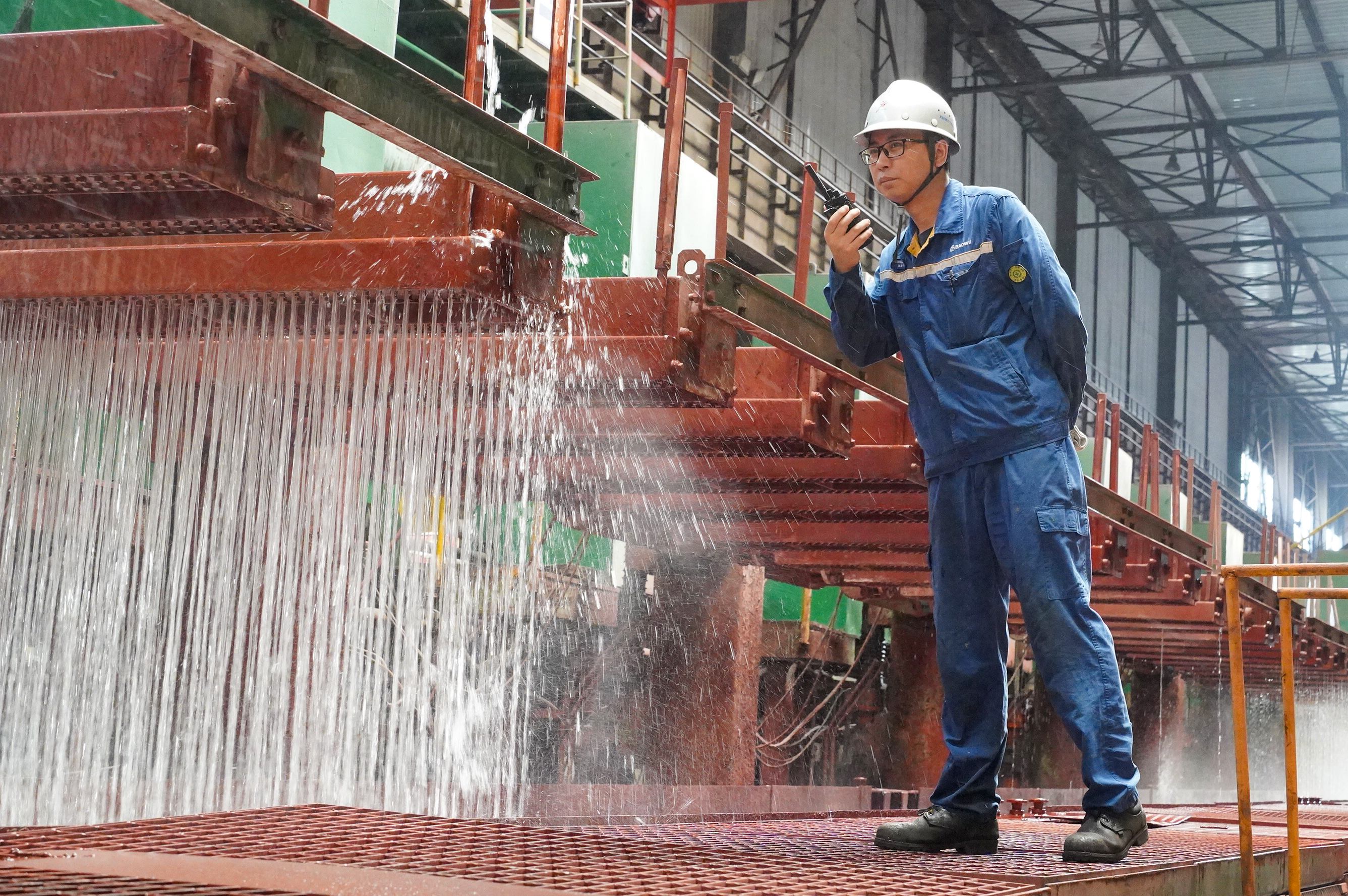 这里没有空调房的清凉,唯有钢水蒸腾的热浪裹挟着飞溅的火星,将车间烘烤成“桑拿房”。但他们早已习惯在高温中“逆行”,手持测温枪穿梭于滚烫的钢坯间,紧盯仪表参数分毫不差,用布满老茧的双手校准每一道工序。飞溅的钢花在安全帽上迸出细碎的星火,却不及他们眼中为质量把关的坚毅光芒耀眼。