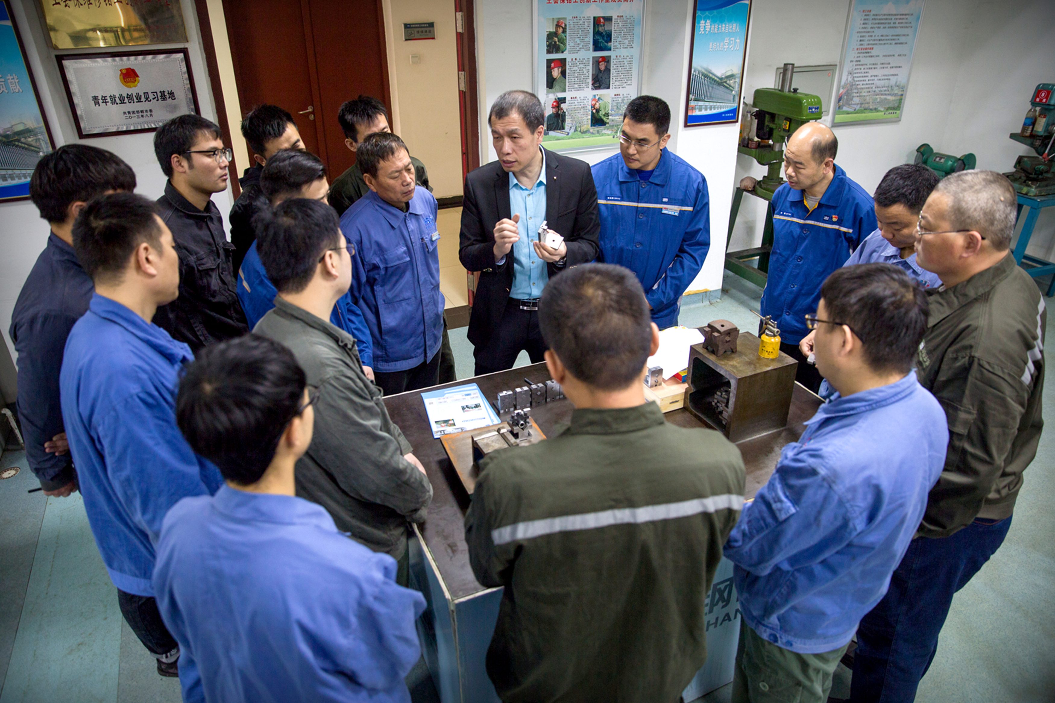 在河钢集团张宣科技的生产车间,机电公司机械五工程部党支部书记、副部长刘大庆,以33年坚守,从普通钳工成长为钢铁设备维检领域的“行家里手”,更身为国家级技能大师工作室带头人,书写着产业工人的奋斗答卷。 1992年,刘大庆从技校毕业进入河钢宣钢,凭借“白加黑”的钻研——白天记录设备参数、排查故障,夜晚钻研技术手册,仅3年便成车间骨干,2002年更以满分斩获企业技能比武冠军。技术革新中,他屡破难题,2009年提出“全生命周期润滑管理”方案,为小型轧钢厂节省数千万元;创新“剖分式偏心轮在线更换法”,将换轴时间从12小时缩至3小时,由此荣获2013年全国五一劳动奖章。