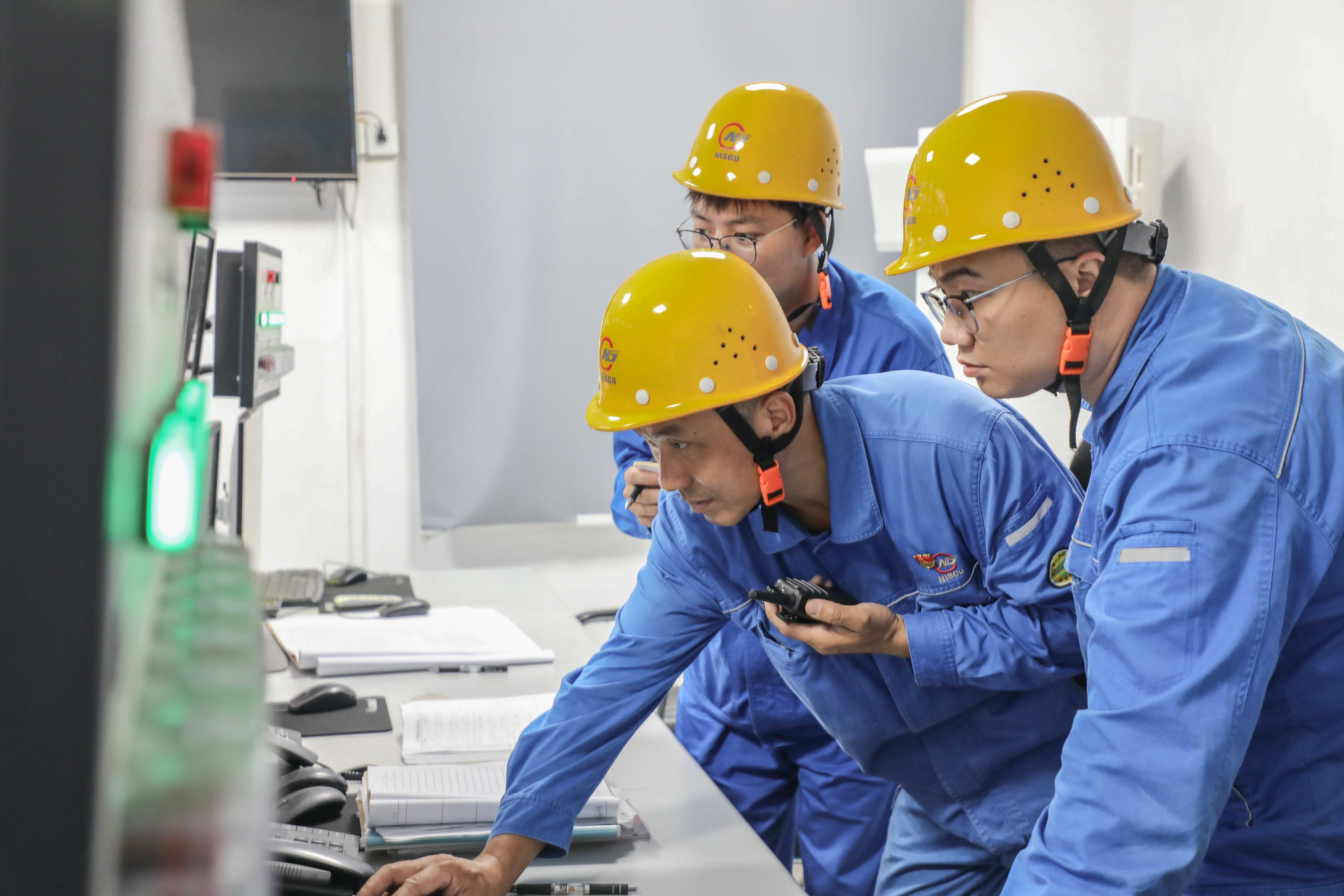 2025年9月8日,在制氧车间调度室内,郑荣紧盯大屏上设备压力、温度、流量等关键数据,时刻关注趋势曲线变化,确保参数稳定在工艺指标区间内。